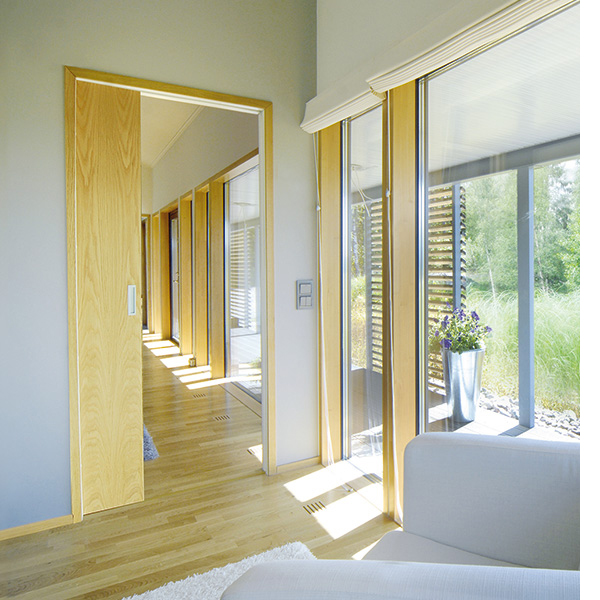 On erikoista, ettei ovien äänen eristävyydelle aseteta usein mitään vaatimuksia. Eihän esimerkiksi olohuoneen seinän päälle vedettävän liukuoven takana oleva tila voi mitenkään toimia rauhallisena makuuhuoneena. Eikä sellainen liukuovi säästä tilaakaan kuten Liune, kun oven auki ollessa vaatimaa seinäalaa ei voi hyödyntää mihinkään kuten Liunen kohdalla olevaa seinää voi. Yleisimmin käytetyn Liunen 22 dB:n ääneneristävyydellä päästään selvästi lähemmäksi väliseinältä vaadittavaa 30 dB:n tasoa kuin kääntyvän oven 14 dB:llä. Mallistostamme löytyy myös 32 dB ovi ääniteknisesti vaativiin kohteisiin. Lue lisää Liunen äänieristyksestä täältä.