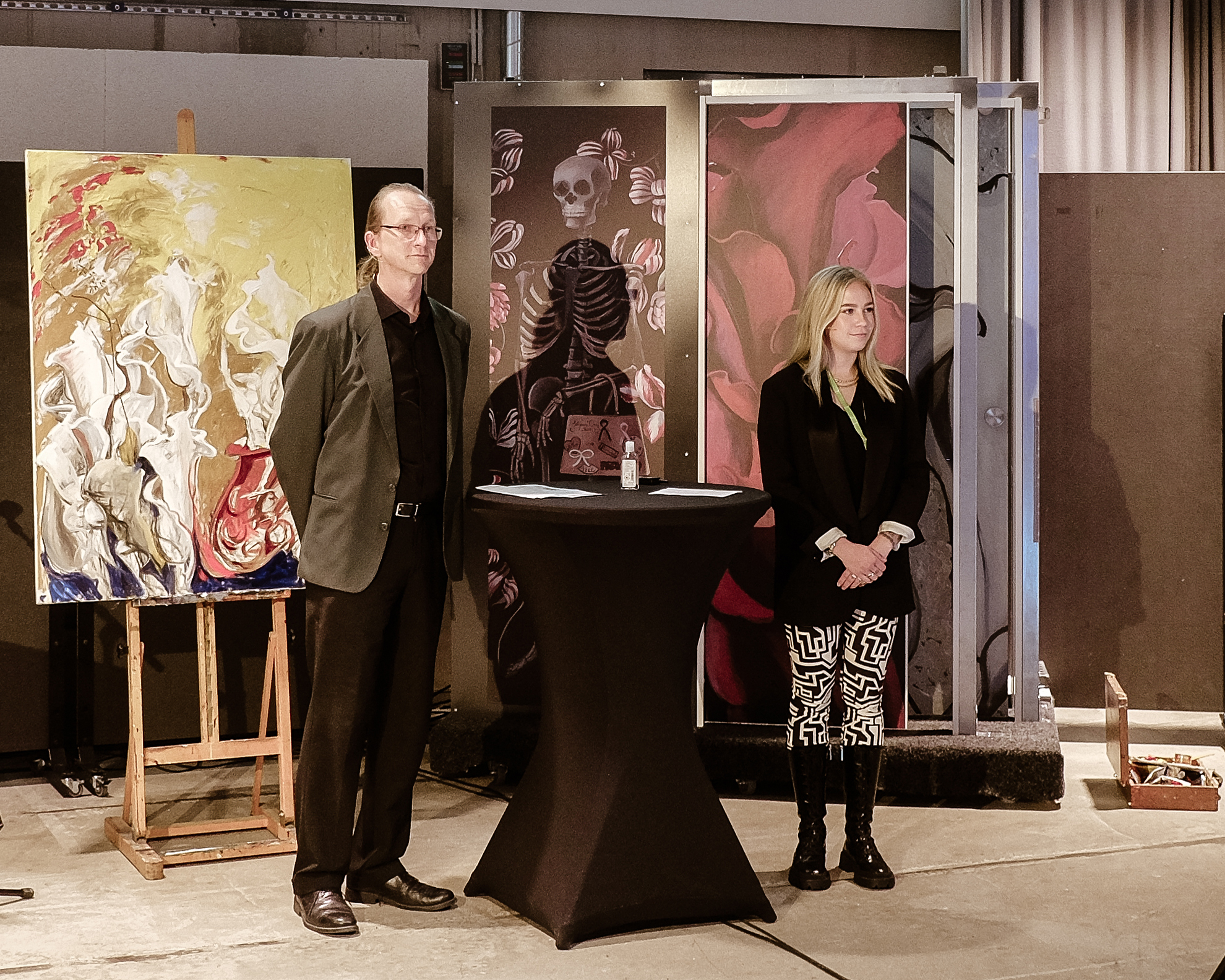 Hänen jälkeensä kuvataiteilijaJohanna Oras. kertoi muun muassa, miten taiteella voi sisustaa ja millainen merkitys taiteella on arkeen. Johanna myös maalasi upean taideteoksen Liune-oveen puheensa päätteeksi.