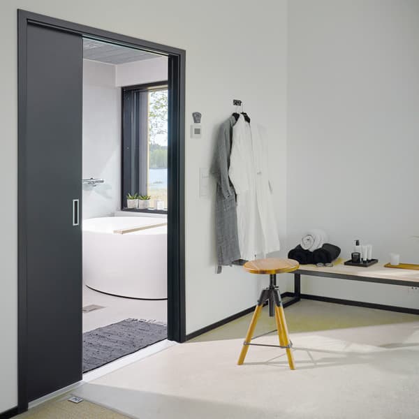 Lasiliukuovet soveltuvat hyvin myös kosteisiin tiloihin, viisi eri sävyä.